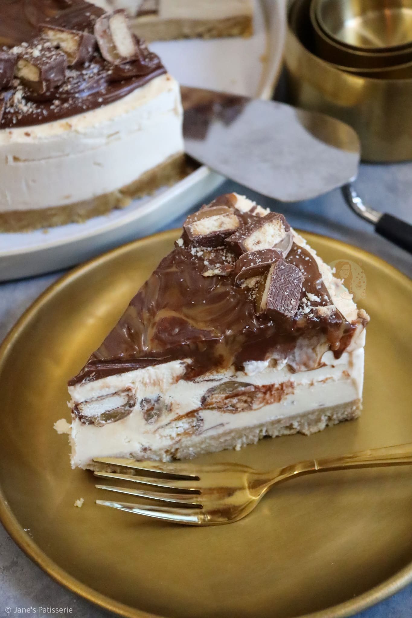 It’s different to the Rolo one, because the crunch of the biscuit from the Twix. The caramel bits ooze out, and it’s so yummy. I love the crunchy chunk of a biscuit when eating the cheesecake, but if you just want the caramel filling and the twix on top, this is definitely doable.