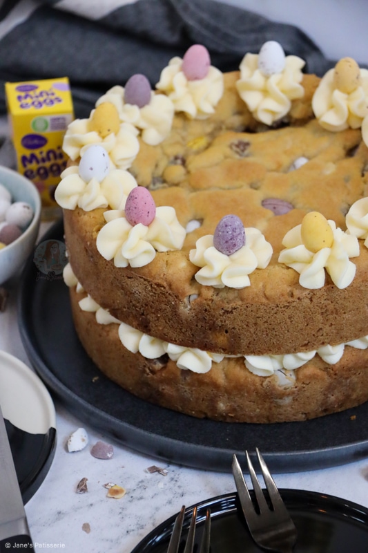 This recipe really is just a non ‘chocolate cookie’ version of my triple chocolate cookie cake, and with Mini Eggs in place of M&Ms. There is no difference to it other than that. However, I have had a lot of people ask for a cookie cake recipe that isn’t chocolate flavoured, so I went ahead anyway.