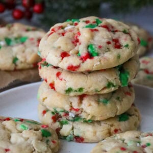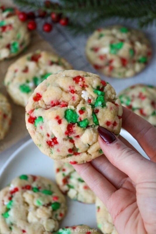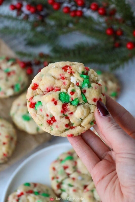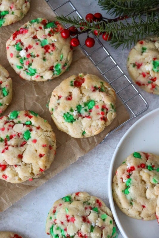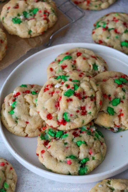 I used a real mix of sprinkles in my cookies as last year I thought it was a smart idea to make one giant pot after Christmas had finished, but these sprinkles are all good ones to use. Generally, because the cookies don’t bake for too long or at too high a temperature, most sprinkles should work (but cheap supermarket ones likely will not)
