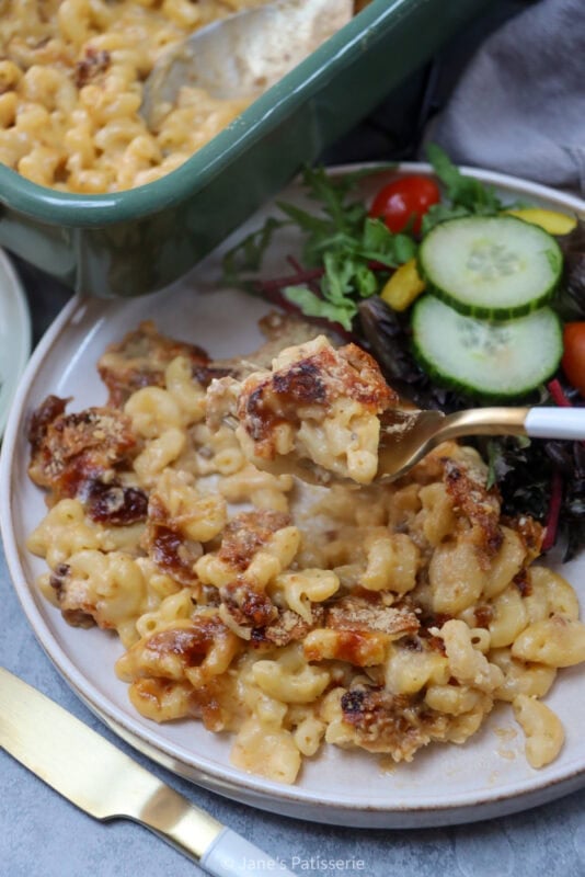 - I use macaroni pasta as I like it, but you can use any pasta you want really. Just make sure to undercook the pasta so it doesn’t become too soft once baked in the dish.