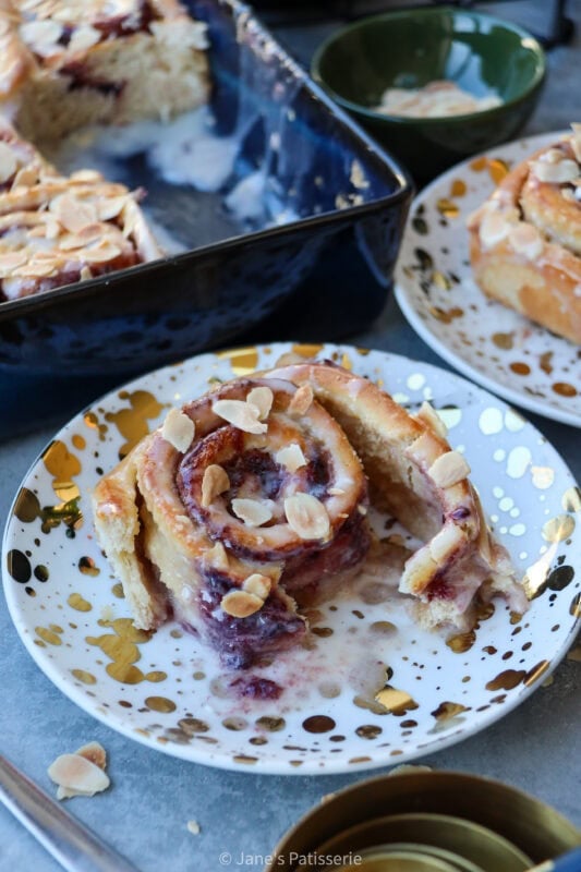 Easy, sweet, soft and delicious homemade bakewell rolls with an almond flavoured dough and filling, and cream cheese glaze.