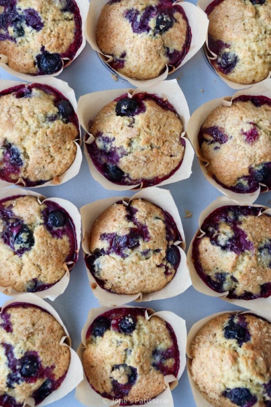 They are moist, full of blueberry flavour with the zing of lemon zest, and a crunchy brown sugar topping adds another texture level which is delicious