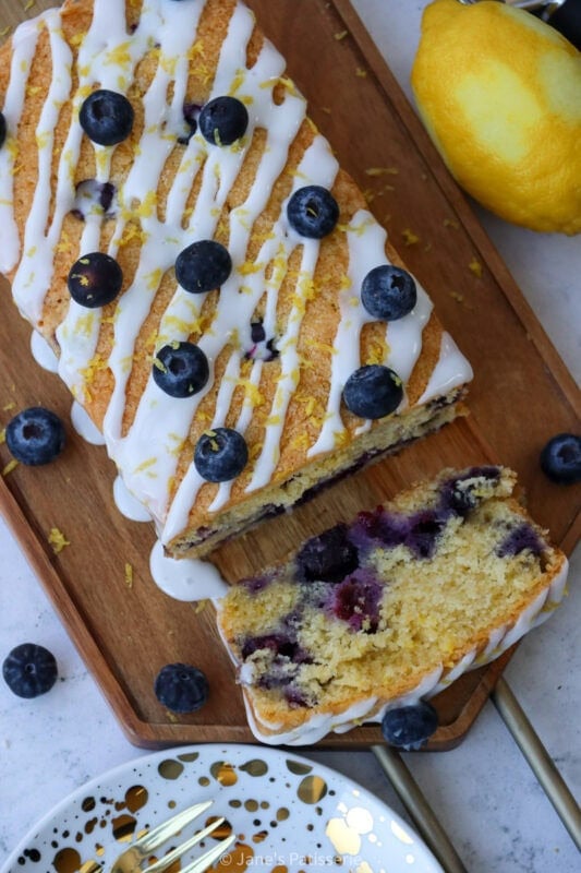 This lemon blueberry loaf cake is a fruity, delicious and simple bake that is packed full of flavour. It has a moist but light crumb to the cake, with ground almonds helping to boost flavour and texture. Fresh blueberries, lemon zest and juice, it has as much flavour packed inside as it can – and even though it’s simple, it’s an absolute showstopper.