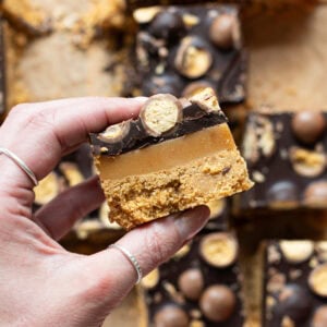 **If you struggle to cut your shortbread and tray bakes without the chocolate cracking on top, set it at room temperature rather than in the fridge and it’ll be softer so therefore won’t crack when you cut it!